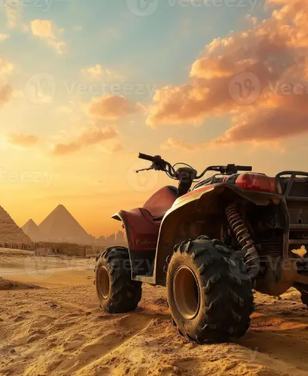 • Quad Biking Adventure: Enjoy an exhilarating 45–60 minute ride across the desert surrounding the Pyramids. Explore hidden paths, capture panoramic photographs, and feel the thrill of riding where most tourists never venture.
